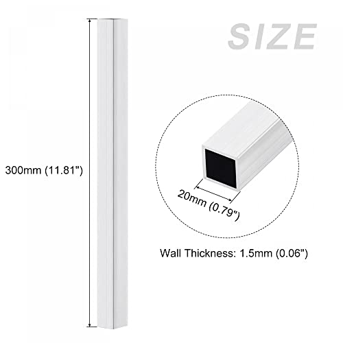 Sourcing map Tubo quadrato in alluminio (20 mm x 20 mm x 1,5 mm x 300 mm) 4 pezzi, tubi in alluminio 6063 - per arredamento casa, macchinari