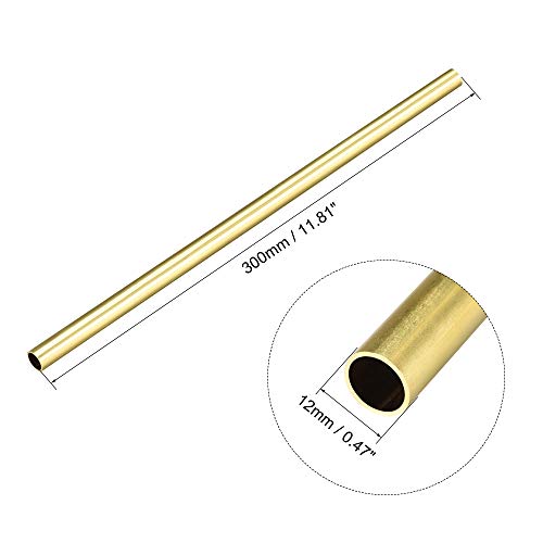 Sourcing map Tubo rotondo in ottone 300 mm lunghezza 12 mm OD 1 mm spessore parete senza cuciture tubo dritto tubo tubatura 2 pezzi