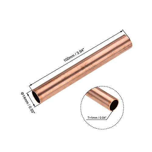Sourcing map Tubo tondo in rame, 14 mm OD 1 mm spessore parete 100 mm lunghezza tubo dritto tubo 3 pezzi