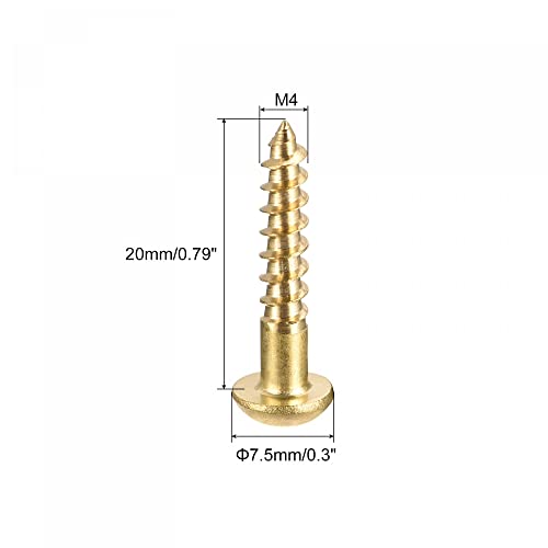 Sourcing map Viti per legno M4 x 20 mm con intaglio a testa tonda in ottone autofilettante 50 pezzi