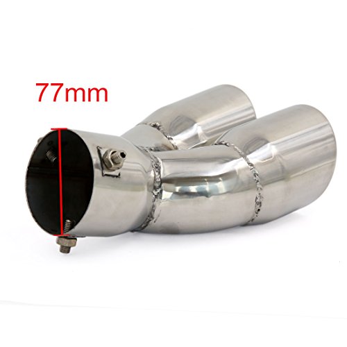 Sourcingmap 77mm Diametro tono argento doppia uscita del silenziatore di scarico per auto