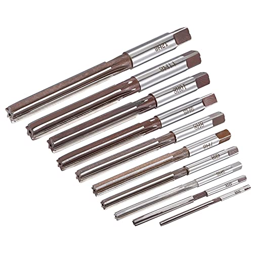 Sourcingmap, set di alesatori a mano H8, precisione in acciaio al carbonio, 6 scanalature, gambo dritto, 10 pezzi (3 mm, 4 mm, 5 mm, 6 mm, 7 mm, 8 mm, 9 mm, 10 mm, 11 mm, 12 mm)