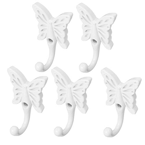 Sourcingmap - Appendiabiti da parete in lega di zinco a forma di farfalla, ganci fai da te per cappotti, asciugamani, da parete con viti, bianco, 5 pz