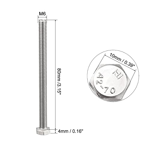 Sourcingmap, bulloni esagonali M6 M6-1 x 80 mm, viti a testa esagonale UNC, in acciaio inox 304, completamente filettate, 15 pezzi