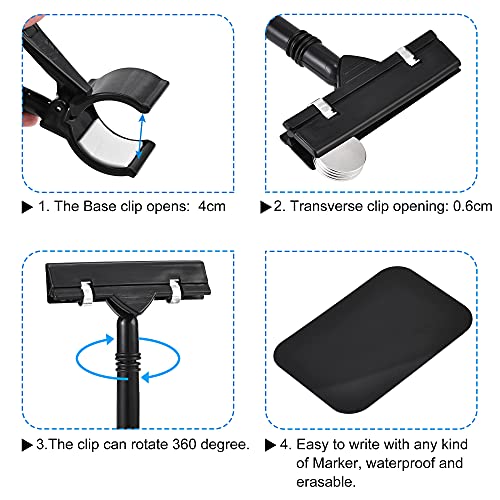 Clip-On Sign ha due design clip, clip base per il supporto, clip trasversale per un segno, è possibile ruotare il segno in qualsiasi direzione per un display completo.