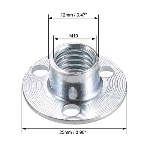 Sourcingmap - Dado a T in acciaio al carbonio a 3 fori, M10 x 25 x 1,8 mm, filettatura femmina 10 pezzi