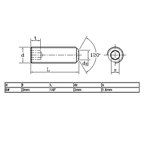 Sourcingmap 12.9 Il Grado 6#-32 x filettatura 1/8" punto coppa a esagono incassato Set viti a grano 100 pz