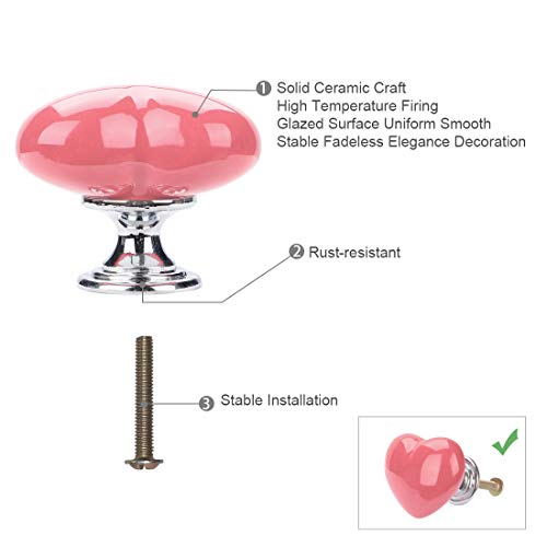 Sourcingmap, 4 pomelli in ceramica per cassetti, a forma di cuore, per mobili, porte, armadietti, guardaroba, comò di ricambio, colore rosa