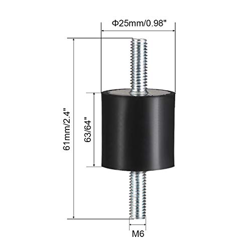 Design universale: 25 x 25 mm (diametro x altezza), supporto in gomma con borchie M6 x 18 mm, set di 3 supporti in gomma a vibrazione.