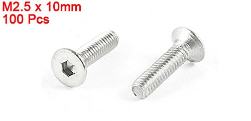 Sourcingmap Set da 100 viti a testa svasata con cava esagonale, in acciaio inox 304HC, M2.5 x 10 mm
