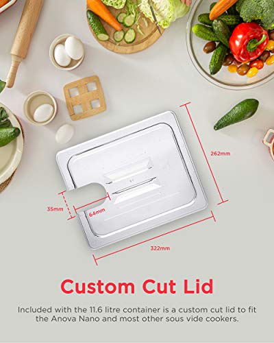 Sous Vide Tools Contenitore in Policarbonato Trasparente da 11.6 Litri, Coperchio Tagliato su Misura per Adattarsi al Circolatore Termico Anova Nano Sous Vide Cooker, Senza Bpa, Antiaderente