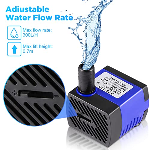 SOUSLOW Mini Pompa Acqua Sommergibile 4W 300L/H con 2 ugelli per Acquario Serbatoio di Pesce Stagno Fontane Giardino Sistema