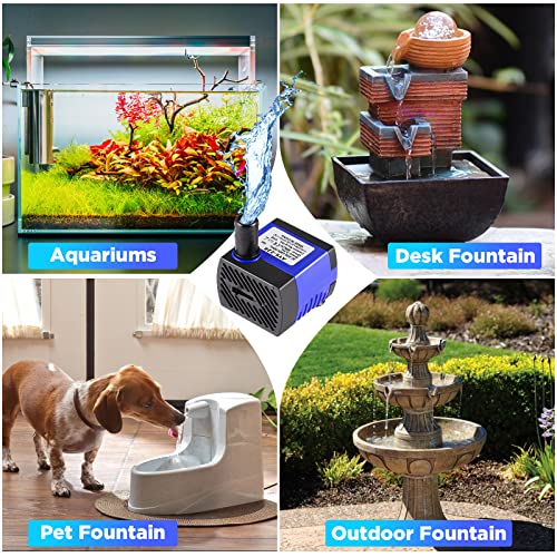 Mini dimensioni: le dimensioni della mini pompa rendono la pompa facile da nascondere nell'acqua, rendendo il serbatoio di pesce più bello. E dotato di un tubo d'acqua da 1 metro, dimensione della pompa: 1,9 x 1,85 x 1,36 pollici.