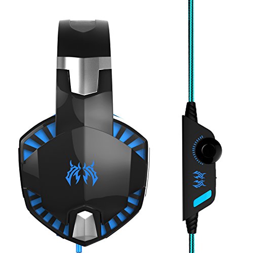 SOWTECH Cuffie Gaming G2000 Over-Ear con Microfono, Gaming Headphone USB per PC, Portatile, Computer - Blue Nero