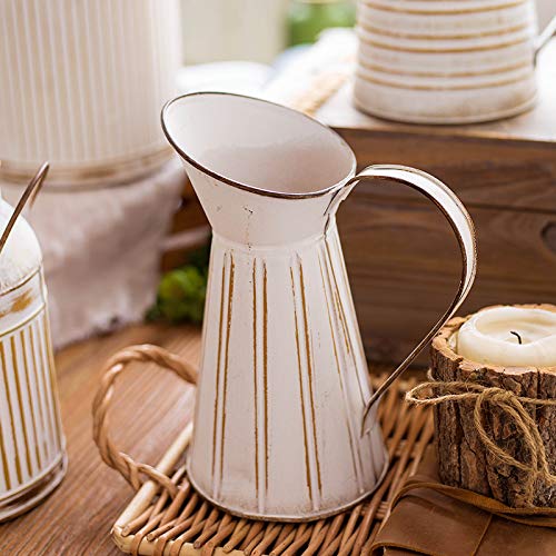 Soyizom Brocca rustica shabby chic in metallo francese brocca per latte in stile rustico rustico vaso rustico per la casa colonica in latta primitiva innaffiatoio per fiori per bagno, camera da letto