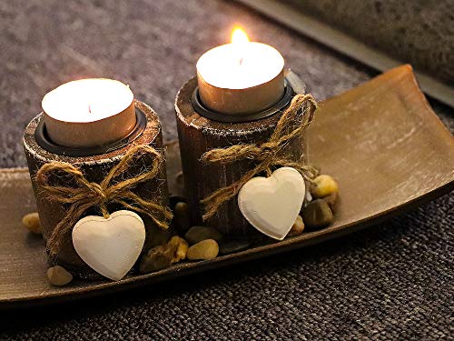 Soyizom - Portacandele in legno con design a forma di cuore, stile vintage, rustico, decorativo, candela, candela, portacandele francese, per decorazione da tavolo, matrimoni,casa, interni ed esterni