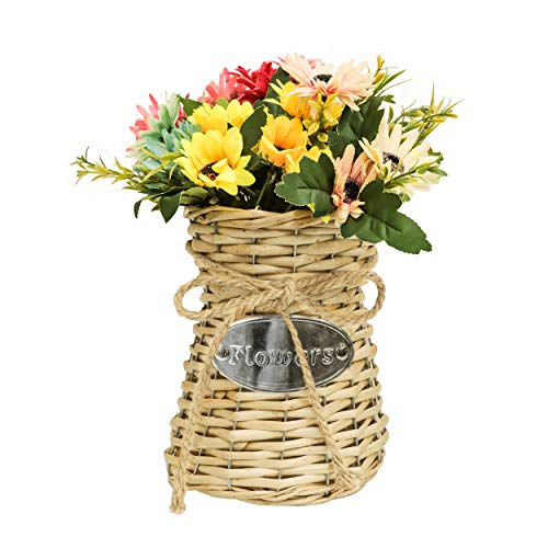 Soyizom - Vaso decorativo in vimini, alto 20,3 cm, realizzato a mano, in legno, erba, vimini. Il nostro cestino in rattan intrecciato a mano è realizzato in filo di ferro di vimini naturale. Eco-frendly, durevole e resistente che è adatto per la decorazione di interni ed esterni.
