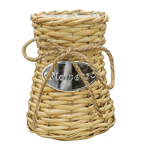 Design rustico, stile antico vintage - Questo vaso in vimini con un motivo di parole "Fiori" in metallo e una corda naturale francese design etichetta che con vero stile pastorale naturale. Dimensioni: 20 cm H (20 cm) x 6,5 "D (16 cm).