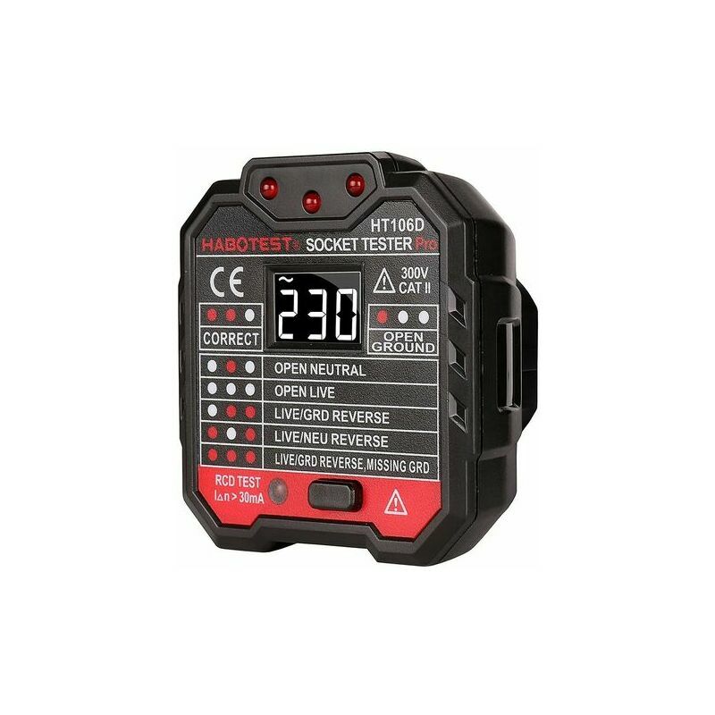 Tester per prese elettriche: tester avanzato per prese per rilevare rapidamente se la connessione del cavo della presa è corretta o meno. È possibile testare il sistema di protezione per garantire la sicurezza elettrica della casa. Perfetto per proteggere la tua sicurezza dai rischi di folgorazione. Display a LED luminoso: i modelli di luce sono ben etichettati sul retro del dispositivo. Gli indicatori LED rossi possono essere chiaramente illuminati anche alla luce diretta del sole. Il tester ha una luce incorporata, quindi può essere utilizzato anche al buio, in modo da poterlo leggere rapidamente. Funzione DRC: questo tester elettrico testa i dispositivi RCD simulando la condizione della terra non collegata, che opera sulle prese RCD e conferma il funzionamento del dispositivo di protezione della terra non collegato. Testa prese standard cablate in parallelo con prese RCD. Assicurarsi di utilizzare questa funzione su prese normali. Ciò può far scattare il cablaggio della casa.