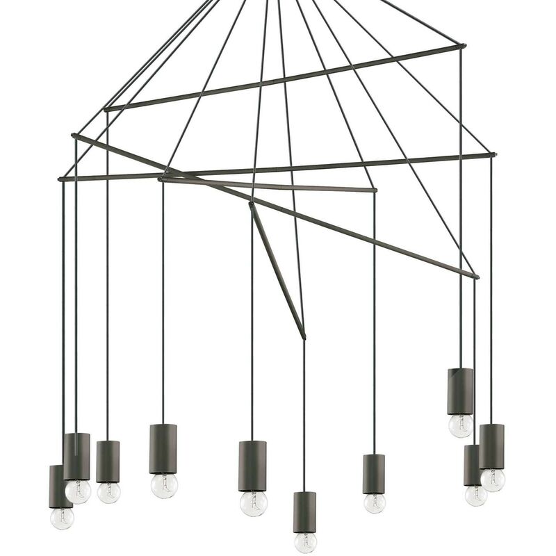 Rosone, montatura e copri portalampade in metallo rifinito con vernice opaca nera. Cavi regolabili in lunghezza. Ø 90 x H min 105 / max 187 cm max 10 x 60W E27 IP20