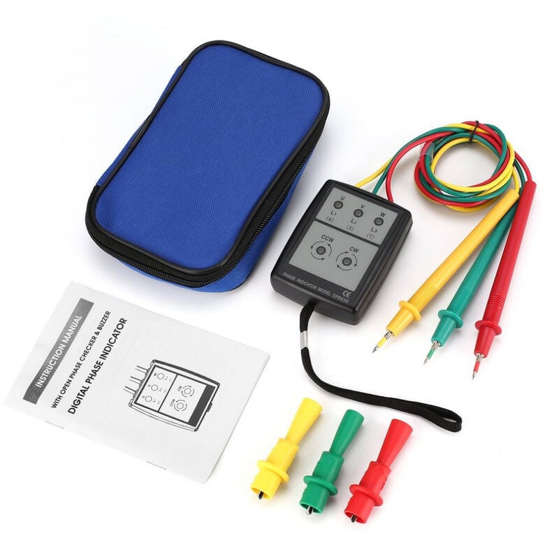 Questo misuratore di fase 3P è progettato per rilevare lo stato di fase aperta e la sequenza di fase, la sequenza di fase è indicata dal diodo a emissione di luce (LED) e dal cicalino. Design multifunzionale, misurazione della sicurezza con rilevamento senza contatto, con rilevamento della sequenza di fase con rilevamento della potenza in tensione e rilevamento della disconnessione con funzione di rilevamento della fase. Con funzione di spegnimento automatico e segnalazione acustica. È adatto per misurazioni domestiche, manutenzione di elettrodomestici, misurazioni di fabbrica, misurazioni di edifici, revisione di elettropompe, ecc. Caratteristiche: Compatto e leggero, facile da trasportare, test rapido e accurato, con elevata sicurezza. Può essere utilizzato per rilevare lo stato di fase aperta e la sequenza delle fasi, la sequenza delle fasi è indicata da diodo luminoso (LED) e buzzer. Design multifunzionale, misurazione della sicurezza con rilevamento senza contatto, con