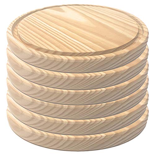 Space Home - Piatti per Servire Polpo, Pizza, Carne, Formaggio - Piatto in Legno - Set da 6 Piatti in Legno - 20 cm