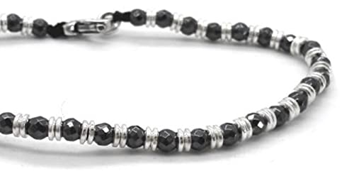 Spadarella bracciale unisex realizzato con anellini in argento silver ed ematite scura, pietra 4 mm lunghezza 17 cm SPBR493
