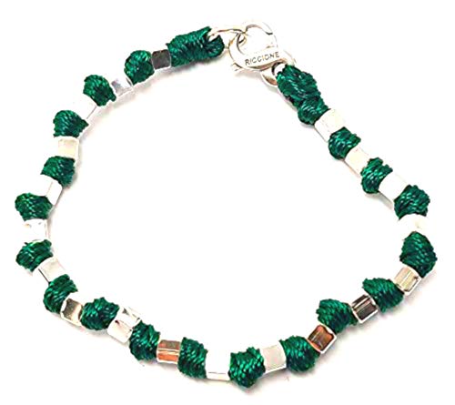 Spadarella spadino bracciale con cubetti in argento 925 di diametro 6mm e cotone nautico verde scuro.Fatto a mano.Unisex.Lunghezza 19 cm.