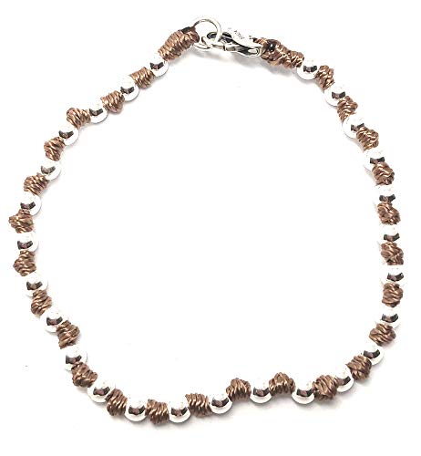 Spadarella spadino bracciale con sfere in argento 925 di diametro 4 mm e cotone marino tortora/marrone.Fatto a mano.Lunghezza 19cm.SPBR02