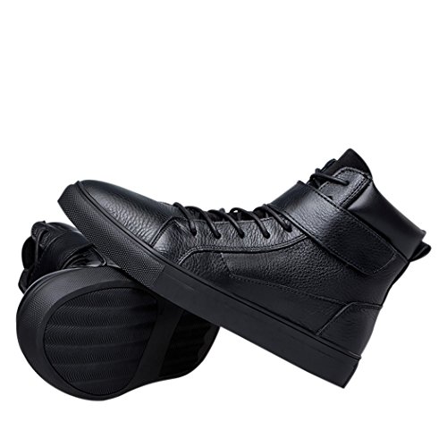 Spades & Clubs Vanghe & Mazze da Uomo in Vera Pelle Leisure Fashion High Top Velcro Lacci Piatto Stivaletti per Quattro Stagioni, Nero (Black), 45