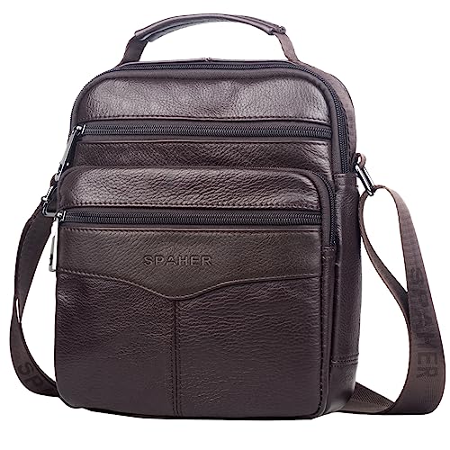 SPAHER Borsello Tracolla Uomo Pelle Borse Uomo Tracolla Borsa Tracolla Uomo Borselli Tracolla per Uomo Ipad Borsa a Spalla Borsa da Lavoro Crossbody Bag Borse Messenger per Ufficio Scuola Viaggio