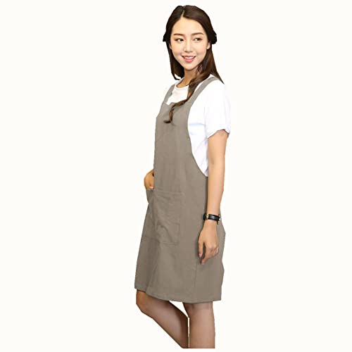 H Spallacci Cotone Lino Grembiule Halter Cross Bandage Grembiuli Giappone Stile, Kimly Cage, Taglia unica