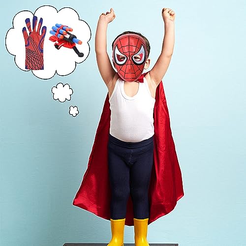 MATERIALE DI ALTA QUALITÀ: design umanizzato della Span Maschera per Bambini, ogni design è diverso e attraente, realizzato in tessuto di alta qualità, tessuto ecologico, guanti lancia ragno giocattolo da polso con ventosa sulla parte superiore, può essere contro il vetro quando è sicuro e comodo da usare O lancio a terra, la ventosa aspira sul terreno o sul vetro, molto interessante.
