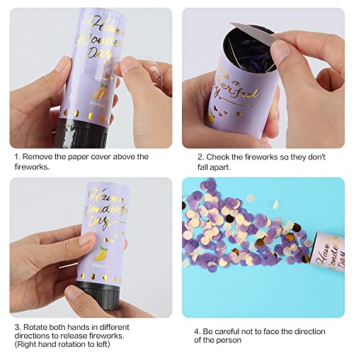 5.【Occasioni multiple】Il cannone di coriandoli fruttati è adatto per varie occasioni, come matrimoni, compleanni, San Valentino, anniversari, baby shower, carnevali, concerti, feste, ecc.