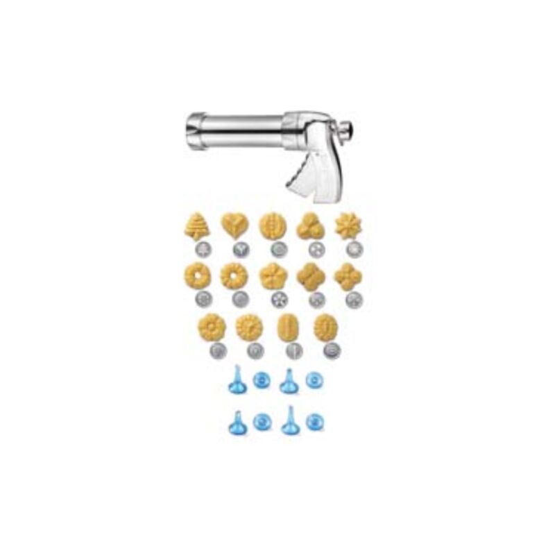 In alluminio - in dotazione: 14 dischetti/formine per diversi tipi di biscotti e 4 beccucci/siringa per le decorazioni - all'interno della scatola il ricettario l'enciclopedia del biscotto Categoria merceologica: Utensili e accessori per pasticceria - Casalinghi - Utensili e accessori per pasticceria