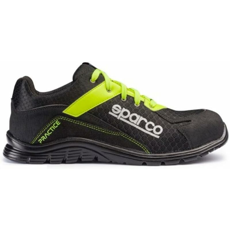Zapatia Sparco pratica TG. 41 nero/ giallo. Puntale composito resistente a 200kg. Template tessile fibra prova di foratura. Cementato PU suola monodensità. Antistatic.Regular PU rimovibile ergonomicamente termoformatura. Fodera in rete traspirante. 3D alta graffi microfibra resistente e traspirante maglia alta abrasione. Tallone rinforzato per la massima aderenza. Certificazione: S1P - SRC. Marca: Sparco. Dimensioni: 43 colore: nero/ giallo.