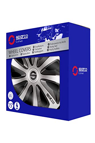 Sparco SPC1573SVBK Copricerchi, Argento/Nero, 15", Set di 4