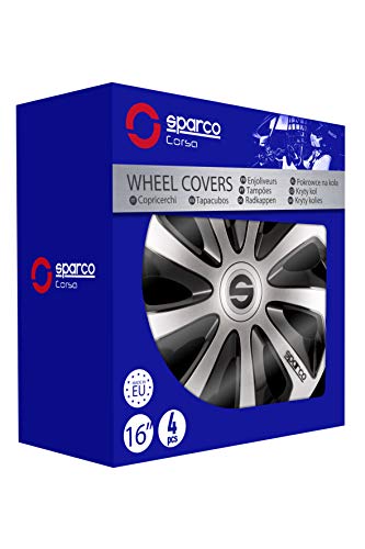 Sparco SPC1673SVBK Copricerchi, Argento/Nero, 16", Set di 4