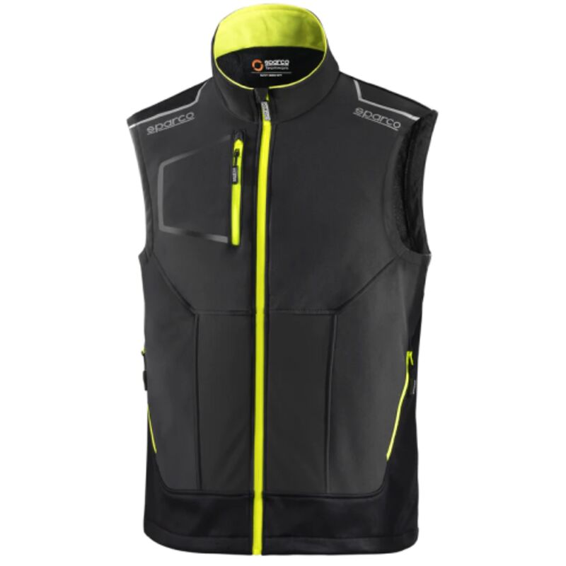 Sparco Tech Light Vest Illinois. Gilet tecnico. CARATTERISTICHE: - Sparco Tech Light Vest Illinois. - Modello: Illinois. - Materiale: 90% nylon - 10% spandex / 240gsm. - Inserti di rinforzo impermeabili e anti-abrasione sulle spalle rivestite. - Cerniera centrale spalmata ed impermeabile. - Loghi Sparco riflettenti e strisce riflettenti ad alta visibilita' sulla schiena.
