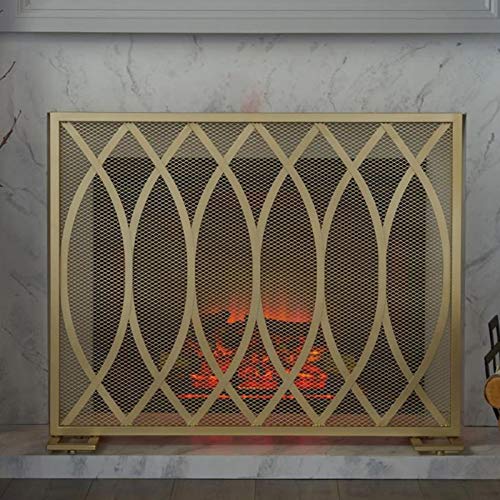 Spark Guard Fire Screen Protector Fireplace Fender Fire Guard Solid Baby Safe Pannello antincendio in Ferro autoportante per stufe a Legna e Carbone Griglie -H 82CM (Oro)