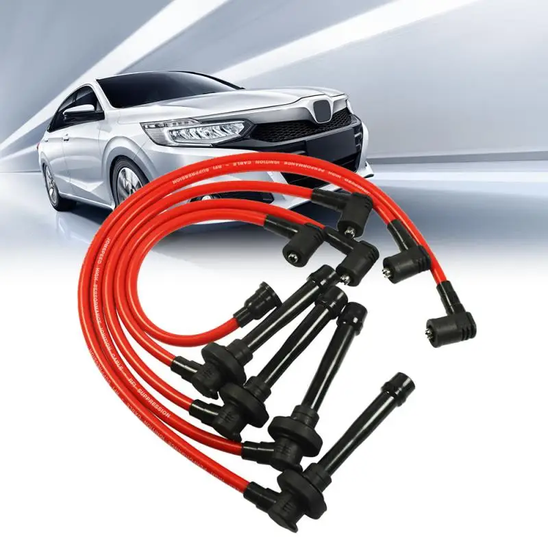 Red 10.5MM Red Spark Plugs Ignition Wires Set For Honda Accord 1998-2002 2.3L DX LX EX Car Motorcycles Spark Plug Sleeve Kit
