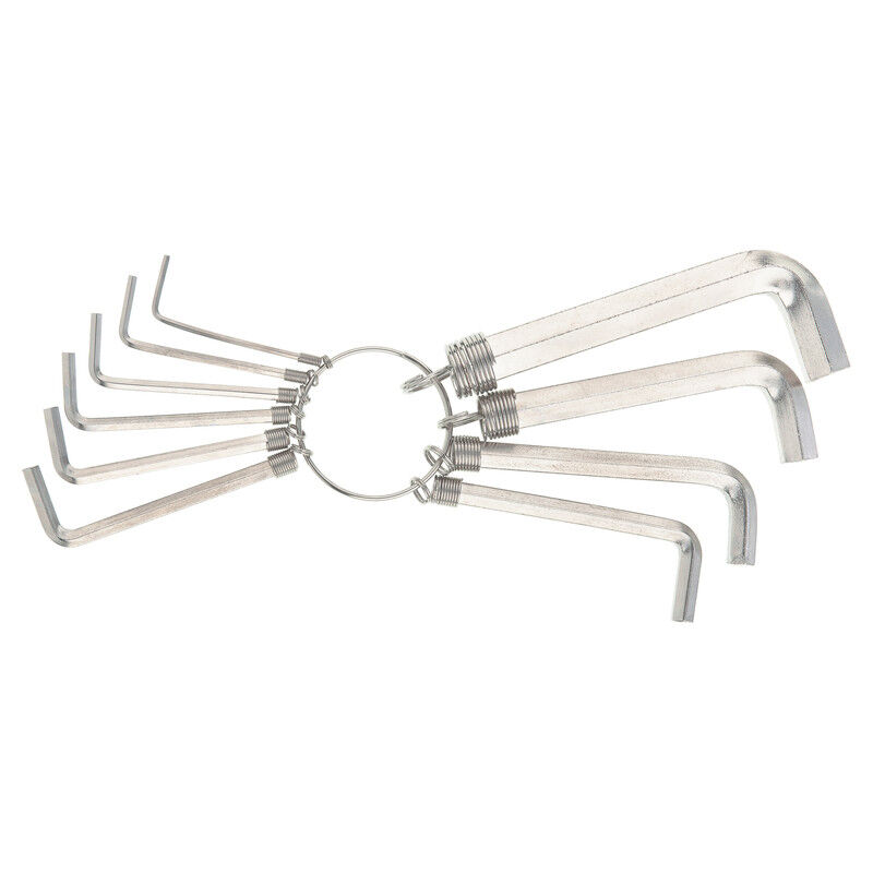 Le chiavi esagonali SPARTA sono progettate per aiutare l'utente durante il montaggio / smontaggio di mobili, ad esempio, o per lavori meccanici. Sono realizzate con un materiale robusto e resistente alla corrosione: l'acciaio inossidabile, inoltre sono nickelate. Per facilitarne lo stoccaggio e il trasporto, sono fornite con un anello per tenerle insieme. Informazioni tecniche: - Misure (in mm): 1.5, 2.0, 2.5, 3.0, 3.5, 4.0, 5.0, 6.0, 8.0, 10.0 - Durezza: 45 HRC
