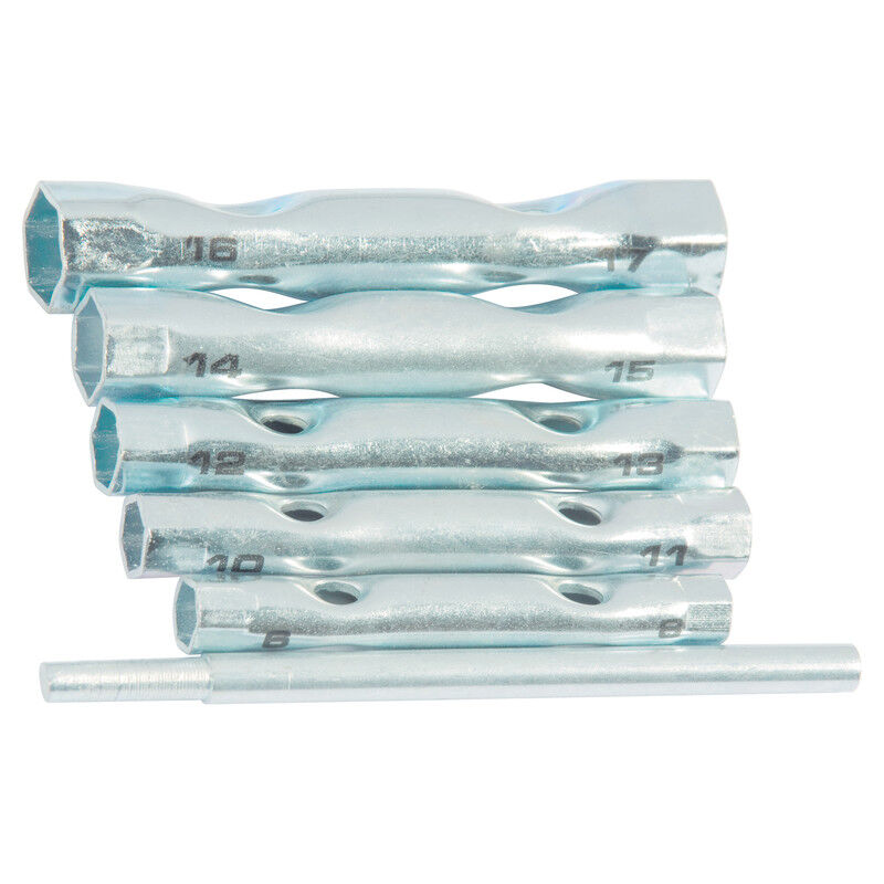 Le chiavi a tubo SPARTA sono progettate principalmente per lavori idraulici, ma possono essere utilizzate per qualsiasi tipo di lavoro. La loro progettazione diritta, non curva, consente di lavorare su viti in luoghi di difficile accesso. Progettazione robusta Le chiavi sono realizzate in acciaio, il che conferisce loro una perfetta resistenza alle sollecitazioni a cui saranno sottoposte. Sono rivestite di zinco per resistere alla corrosione. Il set include 5 chiavi e una barra a T per il fissaggio.