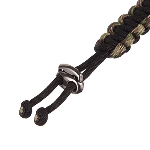 SpartaCord - Braccialetto di Sopravvivenza Multifunzione - Il Non Plus Ultra dei Braccialetti di Sopravvivenza: Regolabile, Resistente e Leggero, contiene Filo di Juta (Acciarino), Filo per Lenza da Pesca ed è Realizzato in Vero Paracord Certificato (MIL-C-5040H Corda Paracadute) - Colore Nero e Stile Multi Mimetico - Garanzia Soddisfatti o Rimborsati