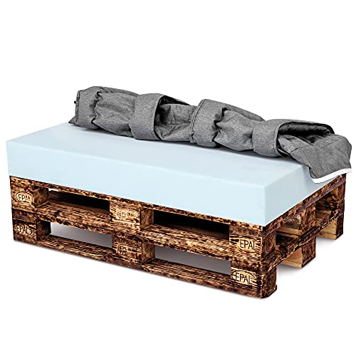 Spatium Cuscini per Pallet, Federa Sfoderabile, schiuma fredda, Idrofobo Cuscino per bancale Euro, progettazione di mobili imbottiti (Grigio Chiaro Set 7 pezzi + coperture antipioggia)