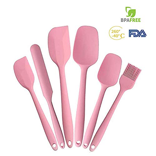 Set di 6 Spatole in Silicone per Cucina, Spatole in Silicone Antiaderente ad alta Resistenza al Calore BPA Set per Cottura, Cottura e Miscelazione, con Robusto Design in Acciaio Inossidabile. (rosa)