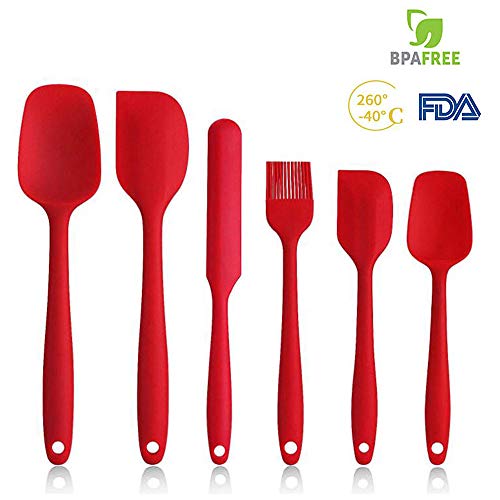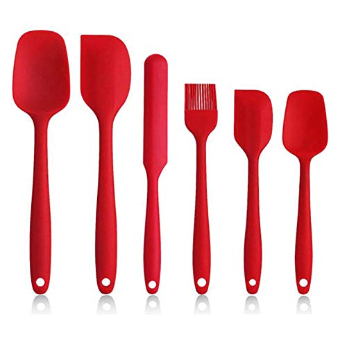 Set di 6 Spatole in Silicone per Cucina, Spatole in Silicone Antiaderente ad alta Resistenza al Calore BPA Set per Cottura, Cottura e Miscelazione, con Robusto Design in Acciaio Inossidabile. (rosso)