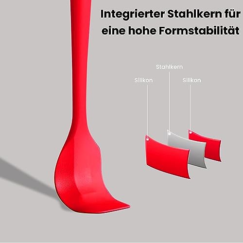 Prodotto di alta qualità. 100% silicone alimentare. I nostri raschietti soddisfano tutte le direttive dell'UE, nonché il regolamento tedesco LFGB e FDA. Tutti i nostri siliconi sono privi di BPA e hanno un nucleo in acciaio inossidabile. Non si deforma Riutilizzabile, flessibile e antiaderente.