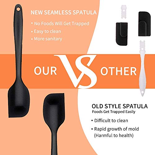 Set di 6 spatole in silicone resistente al calore con utensili da cucina in acciaio inox antiaderente per cottura, cottura e miscelazione (nero)