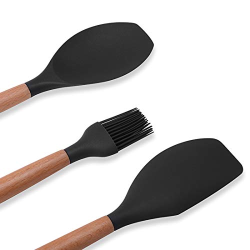 Set di 3 spatole in silicone resistenti al calore, spatola in gomma antiaderente con impugnatura in legno, spatole per cucinare, cuocere e mescolare